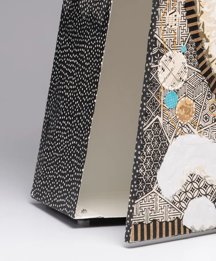 I am a collage artist, and enjoy applying collage work to surfaces like boxes, large wooden platters, etc.