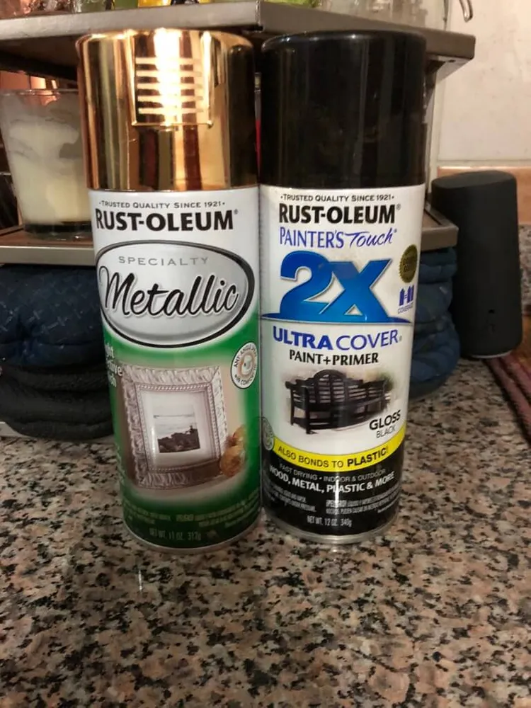 하단 다리 부분은 금색이고 트레이는 검은색으로 스프레이 페인트 하려 합니다. 일단 스프레이를 뿌려서 페인트를 칠하기 때문에 밖에서 하시길 권합니다.. 먼저 한 면을 스프레이로 칠하고 몇 시간 후 두 번째는 코팅이 완전히 건조되었는지 확인하면서 진행을 합니다.