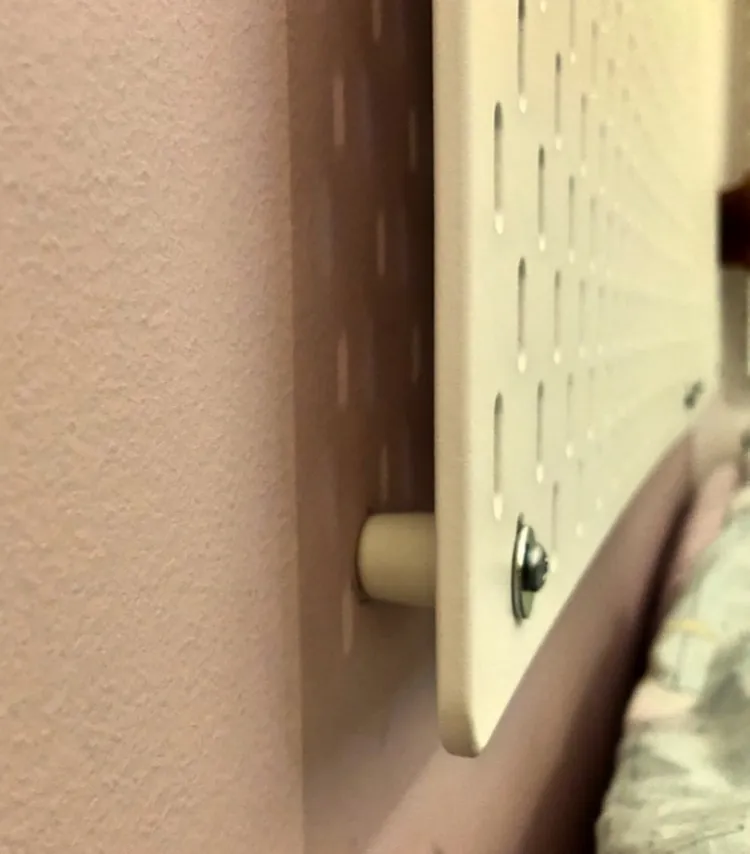 For this reason, we fixed the SKÅDIS pegboard in its original top-fixed position. Then a total of 4 anchors were used to secure it to support the additional load.