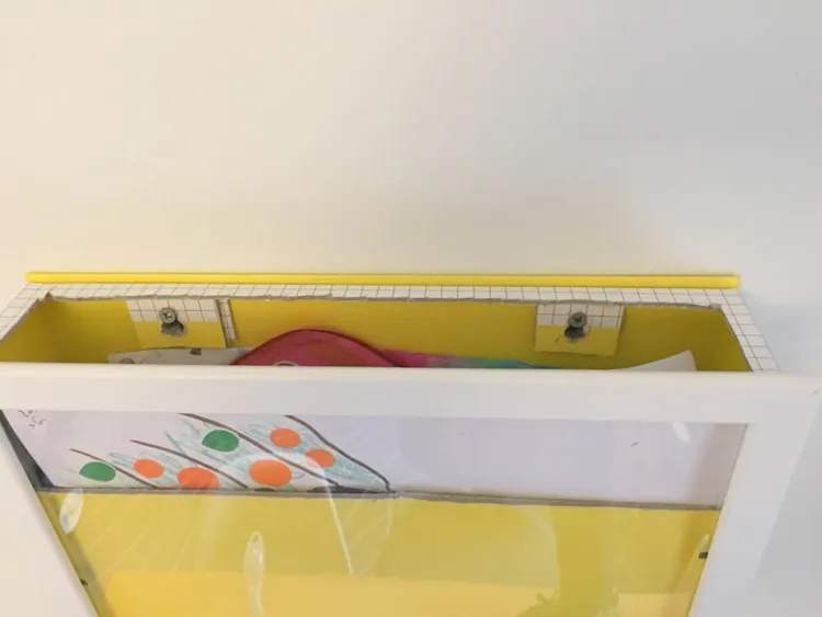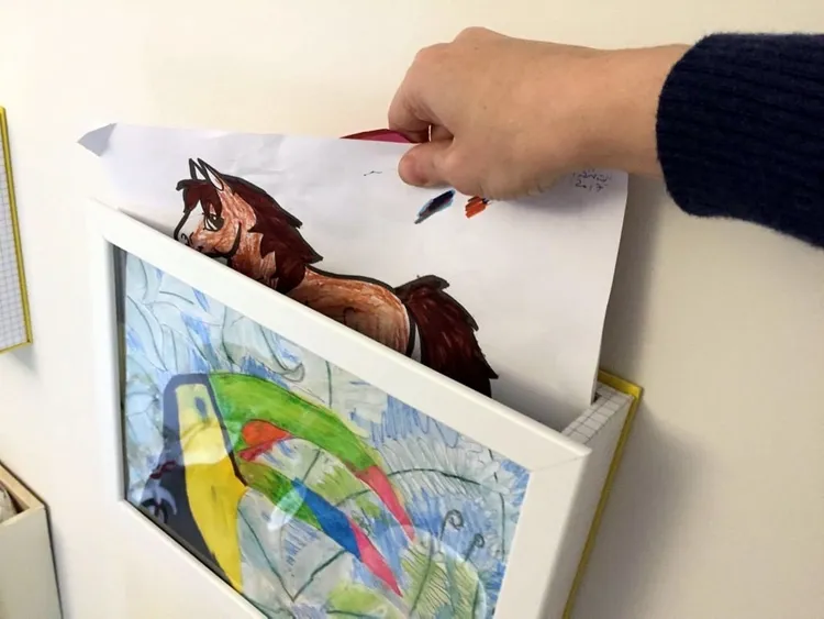 Finally, fix the remaining boards to the front of the frame. (This is a function that allows you to stack one sheet at a time.) Now it's done! A really simple yet practical art display frame for kids is born!