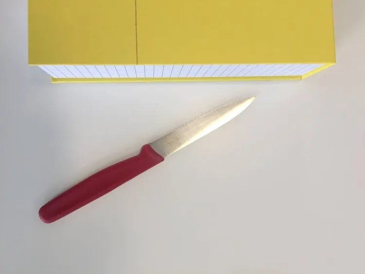 먼저 Hejsan 3 개의 상자에서 큰 상자를 가져옵니다.(상자는 다른 것으로 대체해보세요)다른 작업을 위해 다른 2 개의 상자를 따로 둡니다. 그런 다음 노란색 덮개의 상단에서 약 1/3을 자릅니다.