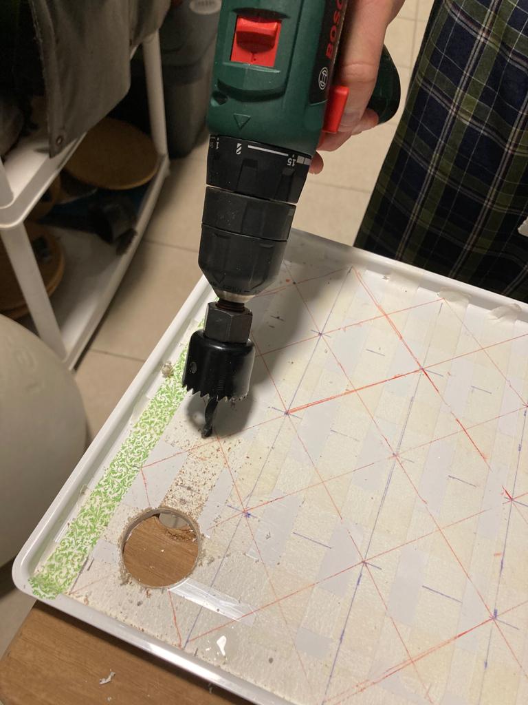 3. Drill a hole in the lid with a FIXA hole saw (or another hole saw yourself).