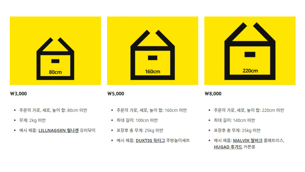 일단 이케아가구나 소품을 택배로 받아보려면 기본적으로 3,000원의 요금부터 59,000원까지 유료의 비용이 들게 됩니다. 아시다시피 그래도 이케아 제품을 직접 보고 골라 구입하는 한국 소비자들이 많은 관계로 오프라인 매장에서 구입을 하는 소비자들이 많은데요, 그래서 이케아 코리아는 다가오는 온라인 마켓의 시장을 무시 못하는 만큼 좀 더 다양한 방법으로 배송 방식을 변화시켜 진행시키는 것 같아요.