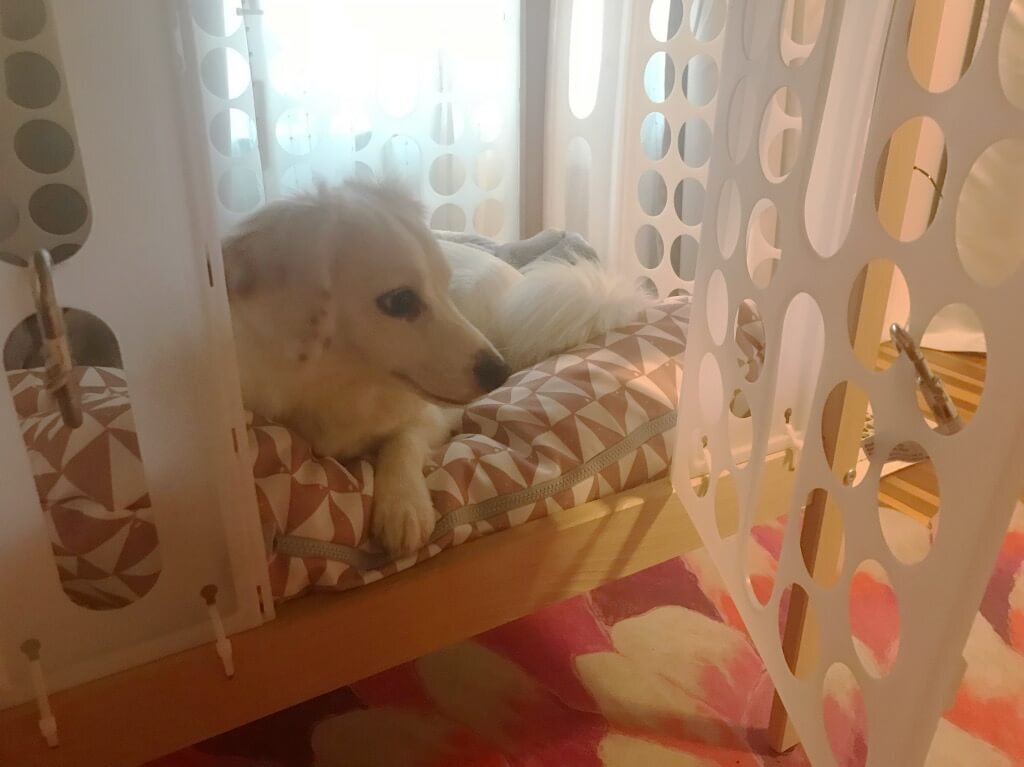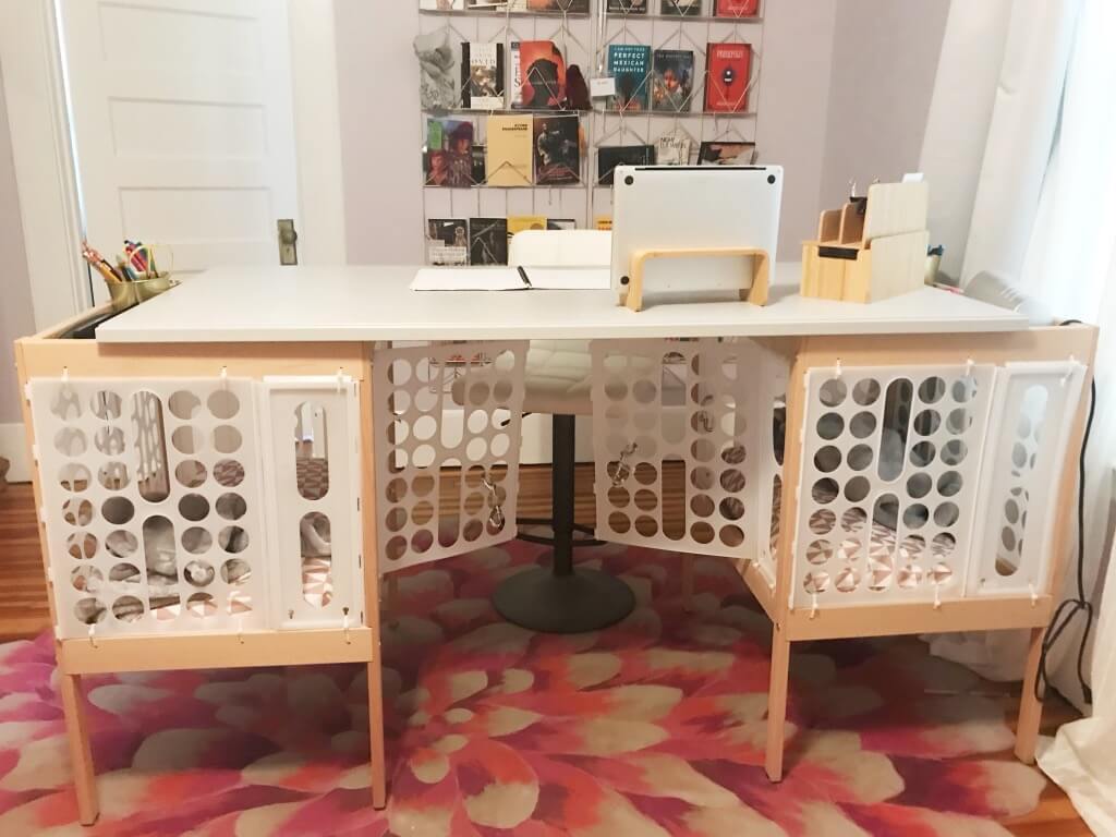 After I adopted my two little doggies, I was looking for a place for them to sleep in my room where they were secure. Conventional crates were ugly and bulky. And then Covid hit, and I needed a desk where I could zoom