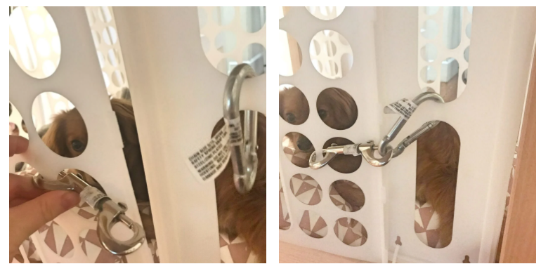 5. Attach the carabiner and spring to the “door” and the “frame” so that you can secure the door in the closed