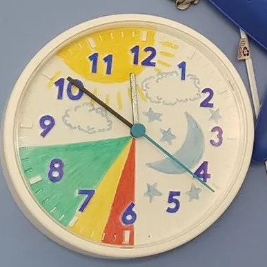 Megan은 자녀가 언제 어른을 깨워도 괜찮은지 알 수 있도록 수면 훈련 시계를 생각해 냈어요. 정말 단순하지만 멋진 아이디어입니다.