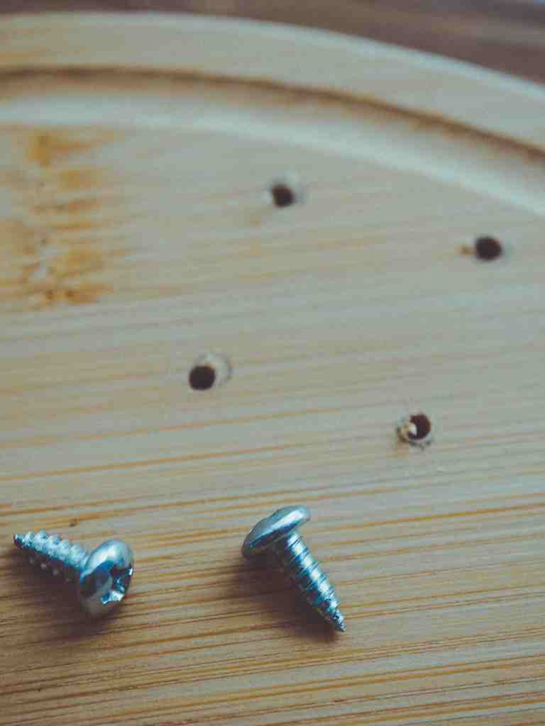마지막으로 원래 Marius 스툴과 함께 제공된 나사보다 30 % 이상 긴 나사 4 개를 선택합니다. Ikea제품을 사용했습니다. 너무 길지 않은지 확인하십시오. 그렇지 않으면 탁자 위의 나무를 뚫고 나올 거에요. (그런 불상사를 방지해야겠죠?)