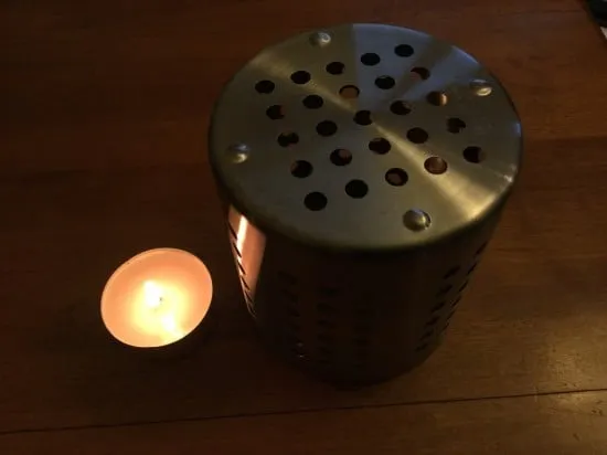 정말 간단합니다. ORDNING 조리 도구 통을 거꾸로 눕힙니다. 그리고 GLIMMA 미니 양초를 불에 붙여 안에 넣으면 끝! 정말 간단합니다!