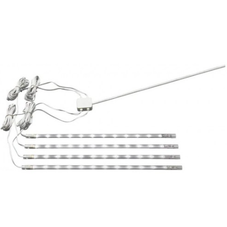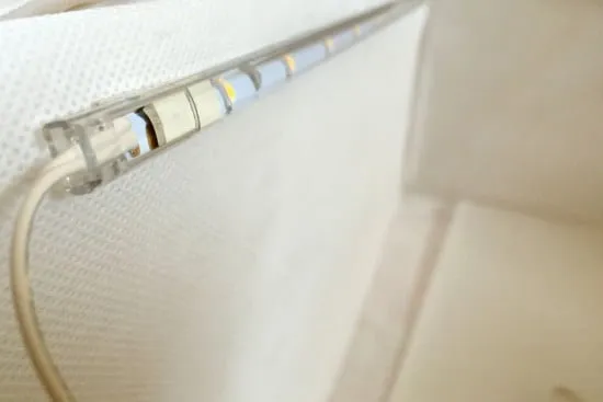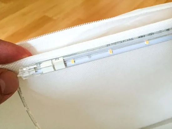 Double sided tape is provided with the lights. Peel off the double sided tape backing and stick the light strips on the inside of the SKUBB box.