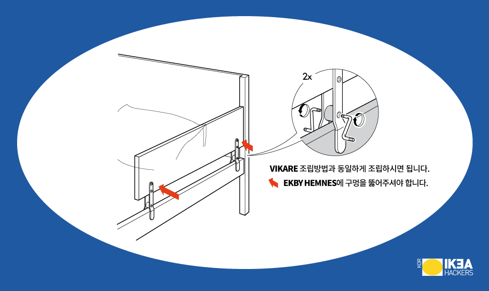 ㉱. VIKARE 마운팅 기어를 EKBY HEMNES 선반에 설치를 해요